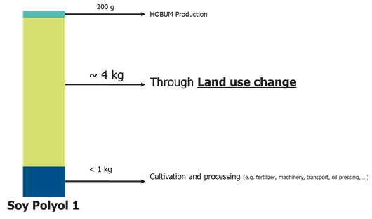 2. How does land use change, like deforestation, impact the sustainability of soy-based polyols?