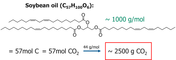 Figure 5: Back of the envelope calculation for biogenic CO2 uptake of soybean oil