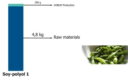Figure 3 breaks down the PCF of “Soy-polyol 1”. It shows that the most significant contributor to the PCF is the used raw materials, i.e. soybean oil.