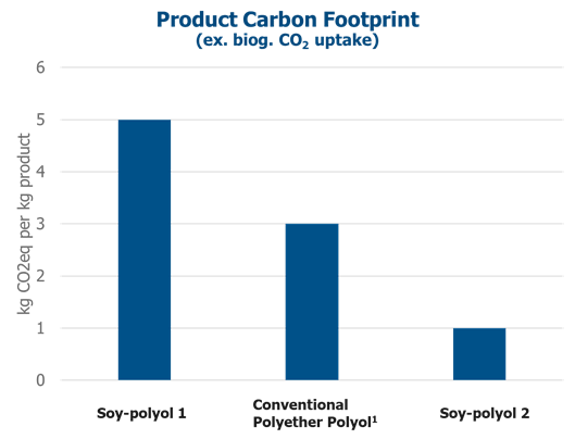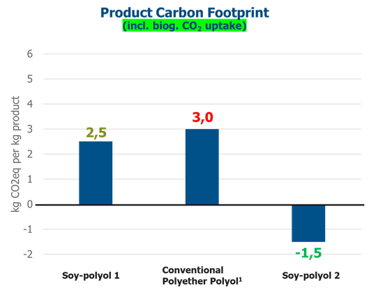 When taking another look at Figure 2, we notice that the PCF of Soy-polyol 1 is increased by 2 kg compared to the PCF of the conventional polyether polyol that originated from crude oil. Can that be right?